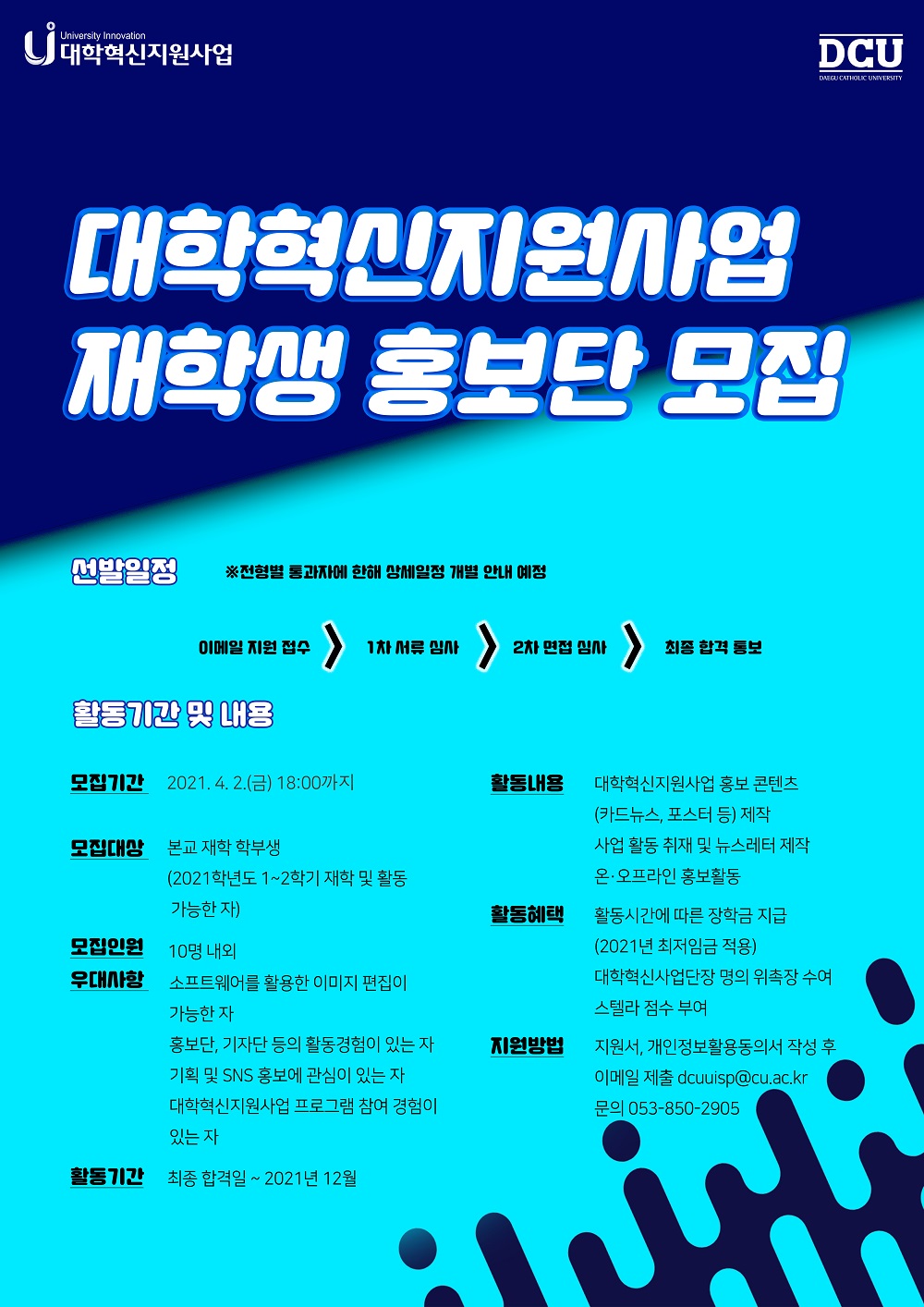 - 문의 : 대학혁신사업단 (053-850-2905)